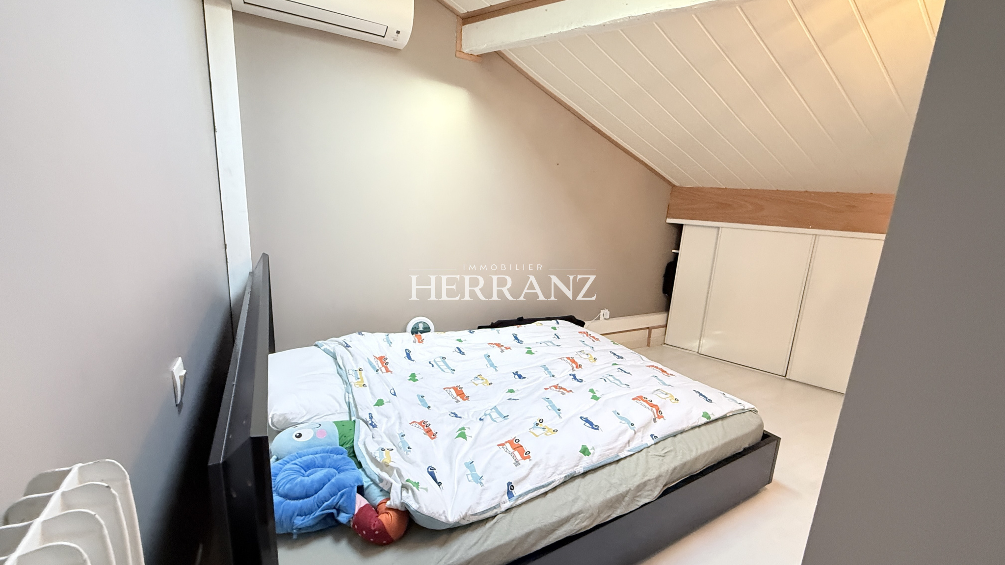 A l'étage de cette maison a été aménagé trois chambres dont deux bénéficiant d'une climatisation réversible.