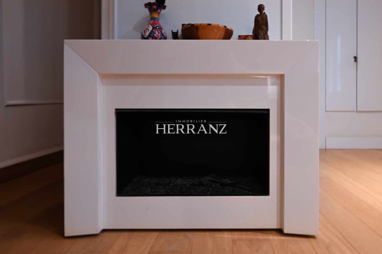 Cet appartement T3 duplex, bénéficie d’un séjour orienté sur cour centrale et orné d'une cheminée contemporaine en marbre.