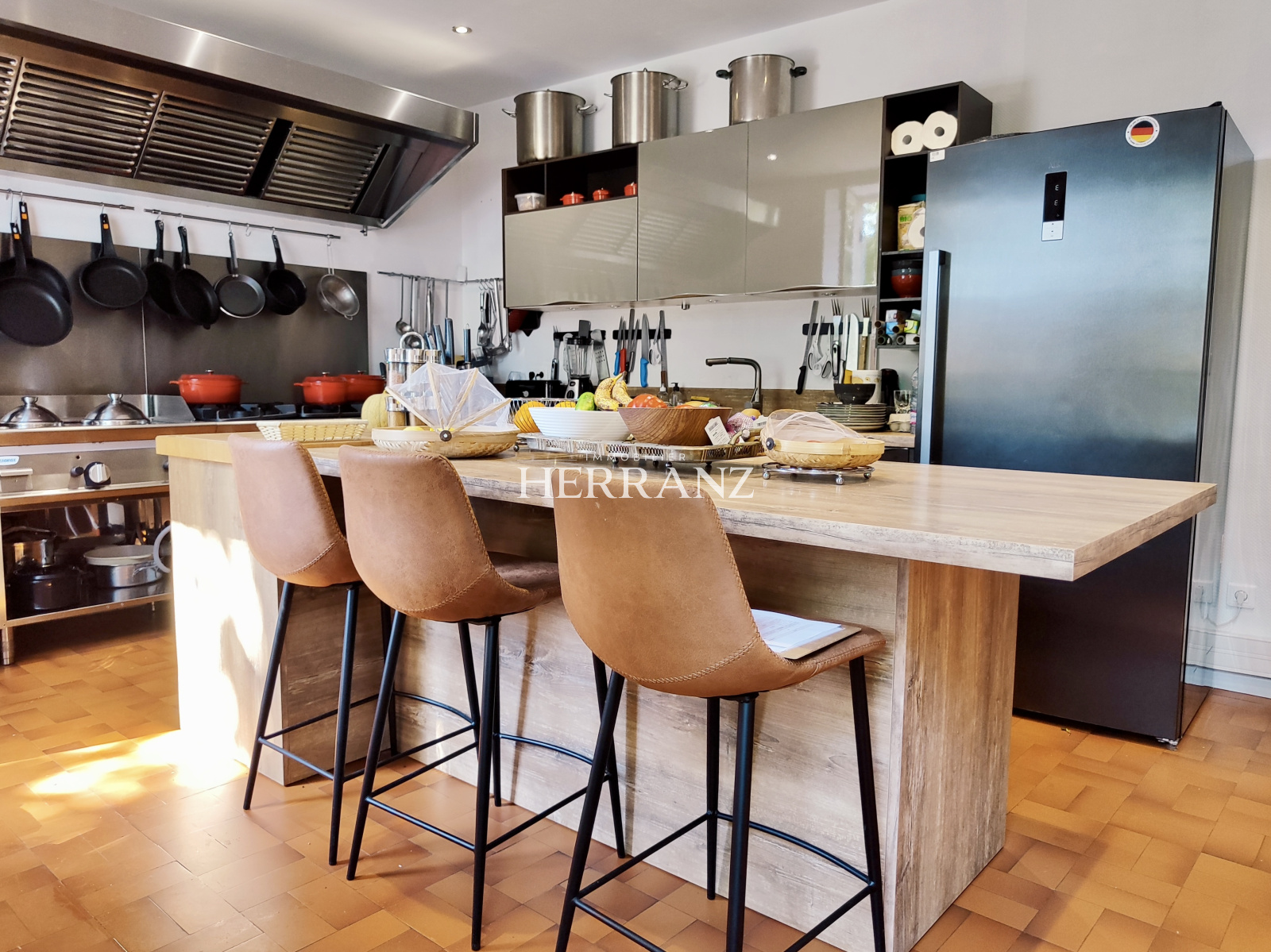 Une agréable entrée dessert une superbe cuisine équipée avec du matériel professionnel haut de gamme, une pièce de vie de plus de 90m2 spacieuse et lumineuse vous permettra de recevoir vos convives, elle dispose également d'une buanderie, d'un wc et d'une salle d'eau.