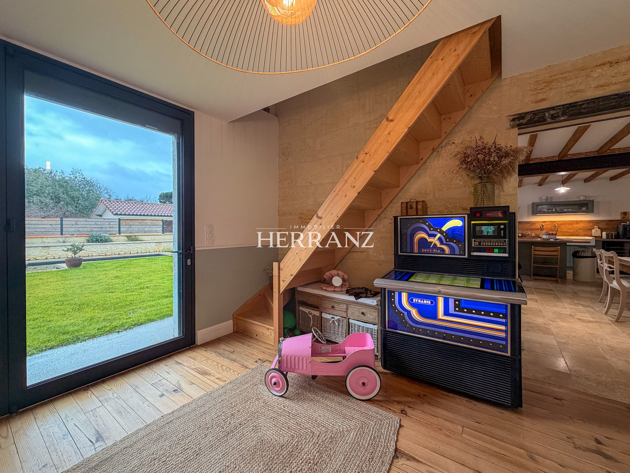 Idéalement située à Saint-Denis-de-Pile, à quelques minutes de Libourne et avec un accès rapide vers Bordeaux grâce à la gare TER et aux principaux axes routiers, cette maison familiale 5 pièces avec terrasse et piscine offre un cadre de vie pratique et confortable, à proximité immédiate des écoles, commerces et services. Dès l’entrée, le séjour lumineux d’environ 40 m² séduit par son volume et sa convivialité. Il s’ouvre naturellement sur la terrasse, créant une continuité harmonieuse entre intérieur et extérieur pour les repas d’été ou les moments de détente. La cuisine ouverte, fonctionnelle et bien dimensionnée, répond parfaitement aux attentes actuelles en matière de convivialité et d’optimisation des espaces. À l’étage, l’organisation est particulièrement adaptée à une vie de famille. Vous y découvrirez une véritable suite parentale avec sa salle d’eau privative et son dressing, offrant confort et intimité. Deux autres chambres complètent ce niveau, ainsi qu’une seconde salle d’eau avec WC, permettant une circulation fluide et une autonomie appréciable pour les enfants ou les invités. À l’extérieur, le jardin d’environ 150 m² constitue un espace agréable et facile d’entretien. La piscine vient parfaire l’ensemble et transforme cette maison en véritable lieu de vie aux beaux jours, idéal pour profiter pleinement de la saison estivale dans un environnement intime et maîtrisé. Cette maison à vendre à Saint-Denis-de-Pile représente une opportunité cohérente pour un achat immobilier en Gironde, alliant fonctionnalité, prestations recherchées et proximité des transports vers Libourne et Bordeaux. Un bien structuré, prêt à accompagner un nouveau projet de vie.