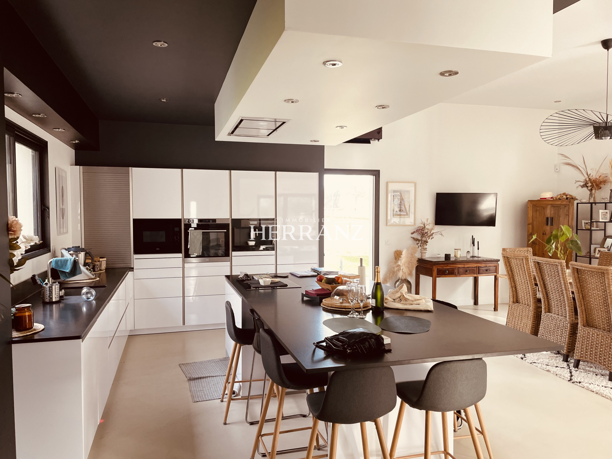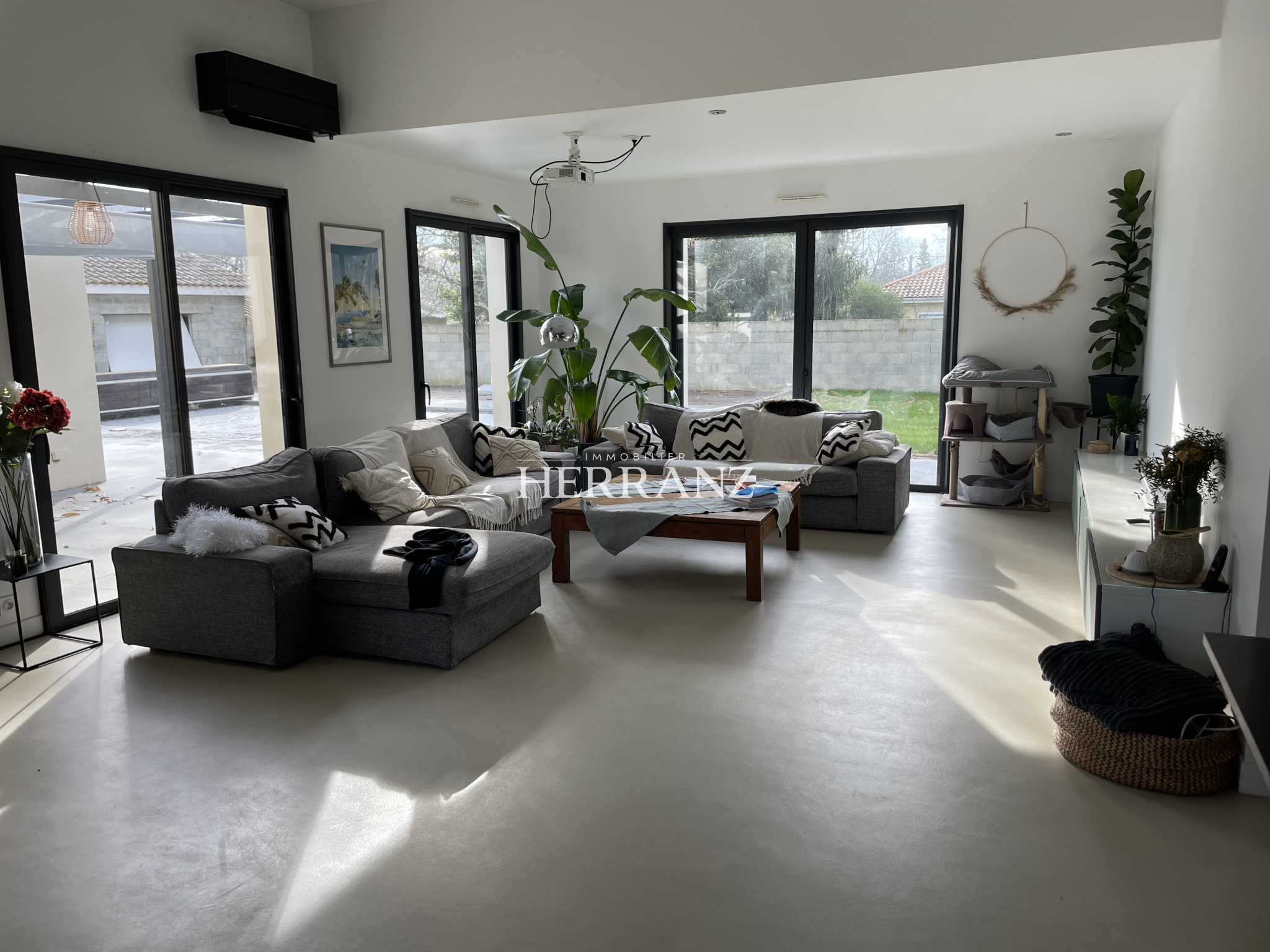 Herranz Immobilier est ravi de vous proposer à la vente cette propriété d’exception de plain-pied, développant environ 185 m² habitables, au cœur d’un environnement préservé, sur un terrain arboré de 7 708 m². L’entrée ouvre sur une pièce de vie remarquable de 73 m², bénéficiant d’une exposition plein sud et d’une luminosité optimale tout au long de la journée. La cuisine américaine, aux lignes épurées, s’intègre parfaitement à cet espace aux volumes généreux. La propriété se compose de huit pièces, dont quatre suites disposant chacune de leur salle d’eau privative, offrant un haut niveau de confort et une parfaite indépendance. À l’extérieur, le parc paysager, soigneusement arboré, constitue un cadre naturel rare. Une piscine au sel de 8 x 4 mètres vient compléter cet ensemble avec élégance. Prestations complémentaires : système de chauffage par climatisation, qualité des matériaux, distribution fonctionnelle et prestations soignées. Une propriété aux lignes sobres et aux prestations abouties, idéale pour une clientèle en quête de calme, d’espace et de standing. À visiter sans tarder.