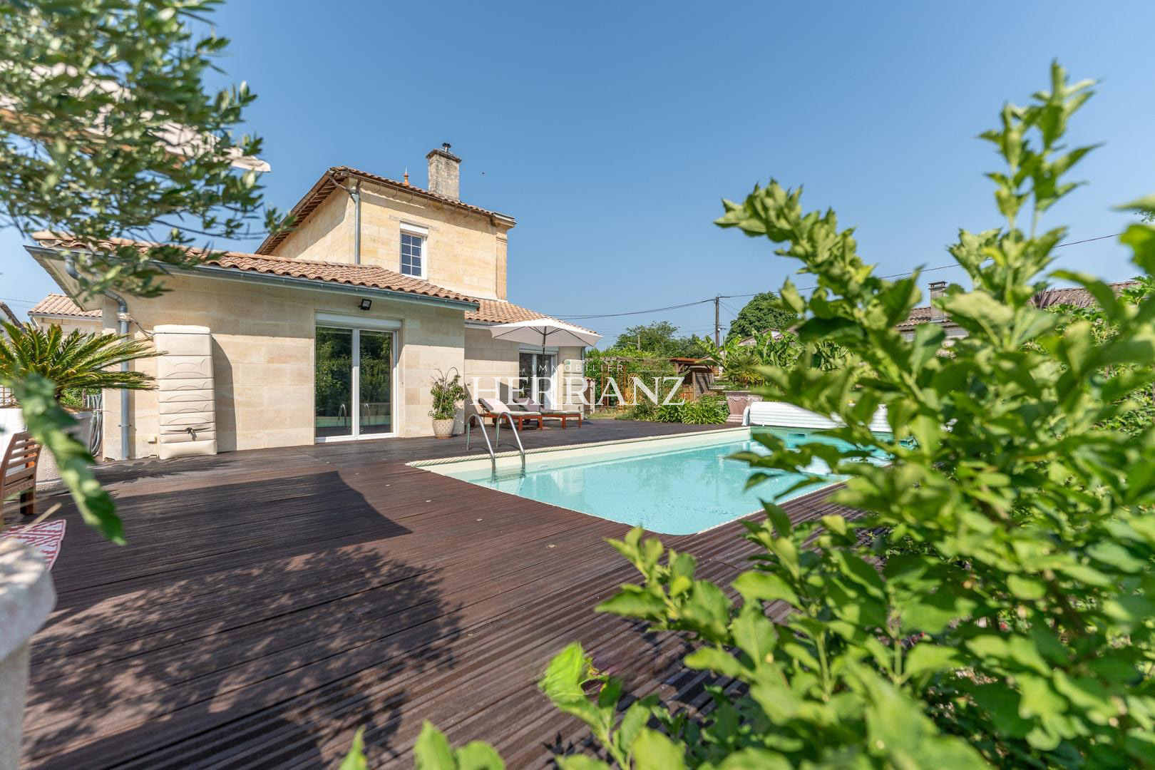 HERRANZ-IMMOBILIER vous présente cette superbe maison de maître en pierre de taille girondine, entièrement renovée, située dans un environnement privilégié et recherché, dans un calme absolu et bucolique.